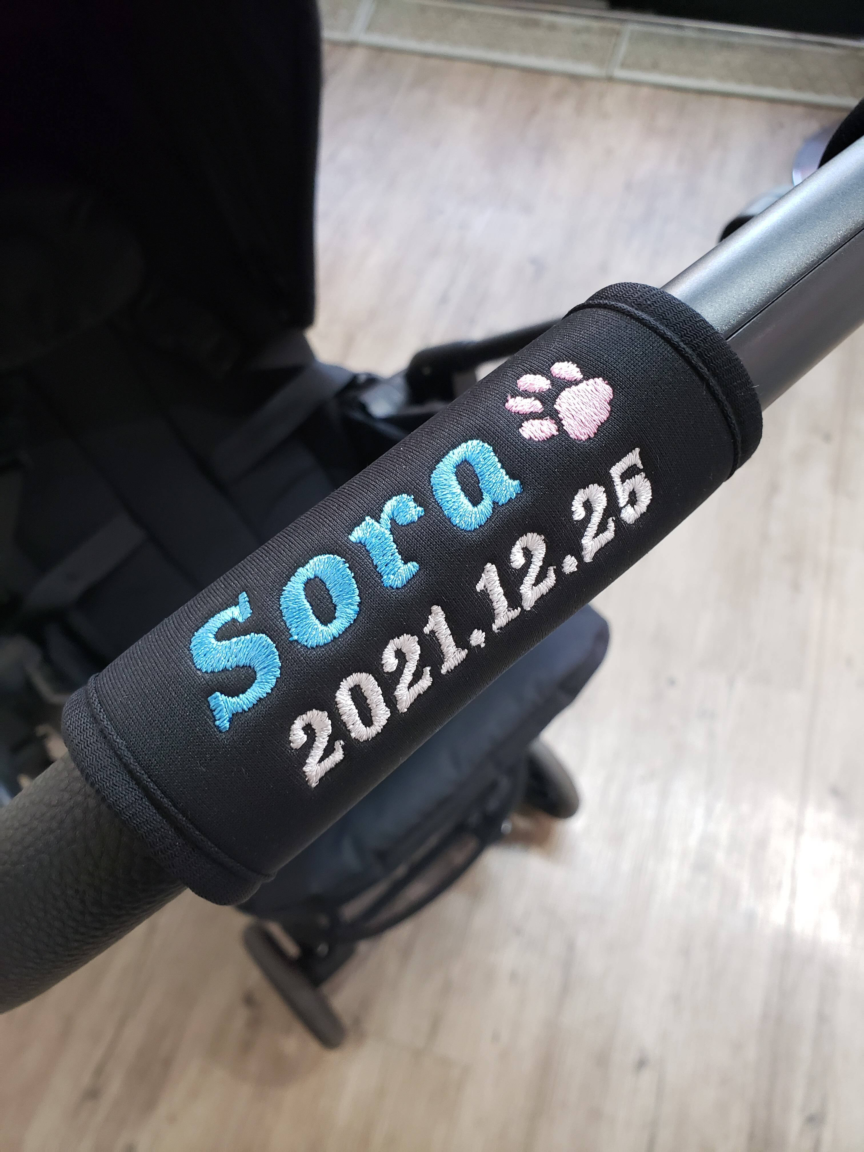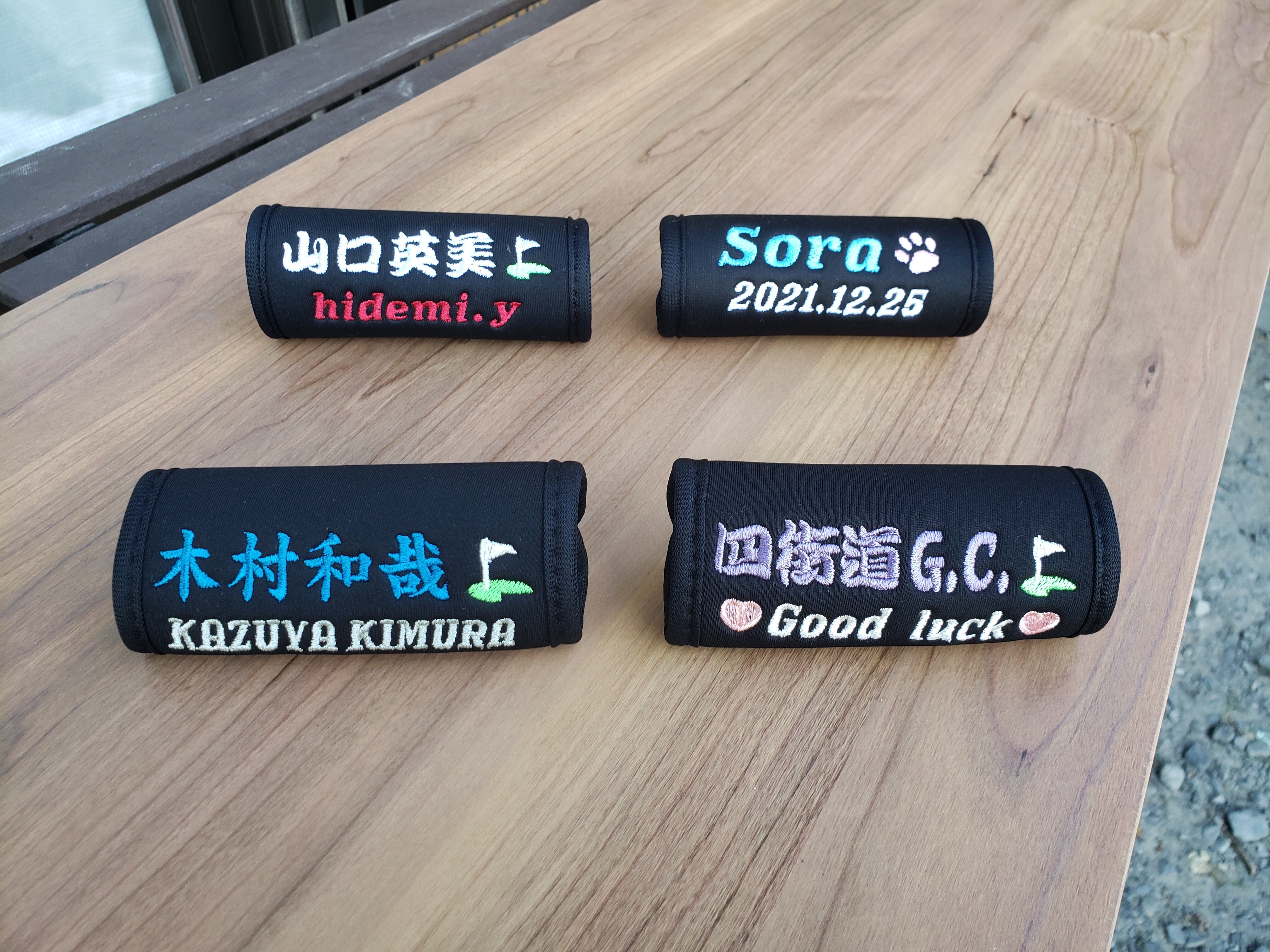 スーツケースやゴルフバッグに便利なハンドル(持ち手)カバーに、刺繍で文字をお入れします♪
