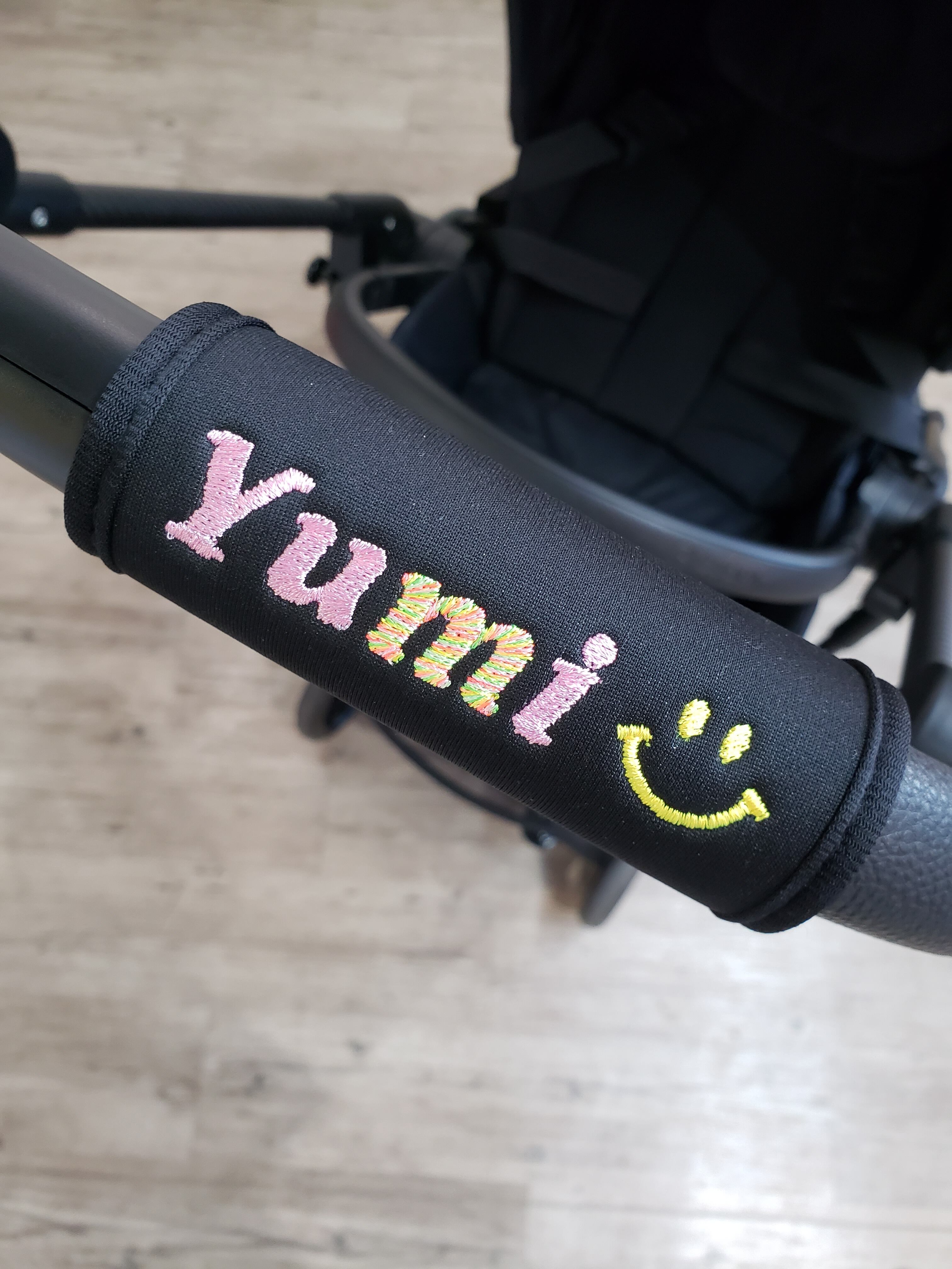 ◎ハンドルカバー 黒(文字2列の刺しゅう、絵文字1つ込) ・・・¥1500